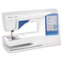 Symaskinen erbjuder 215 inbyggda sömmar, inklusive nytto-, stretch- och dekorativa sömmar samt flera knapphål. Den grafiska displayen visar vald söm och rekommenderade inställningar för längd och bredd.