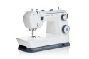 Maskinen är utrustad med praktiska funktioner som integrerad nålträdare och LED-belysning, vilket underlättar arbetet och ger god sikt över sömnadsytan.