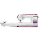 Maskinen är utrustad med EXCLUSIVE SENSOR SYSTEM™, som automatiskt anpassar pressarfotstrycket efter materialets tjocklek. Den generösa arbetsytan till höger om nålen ger extra utrymme vid större projekt.