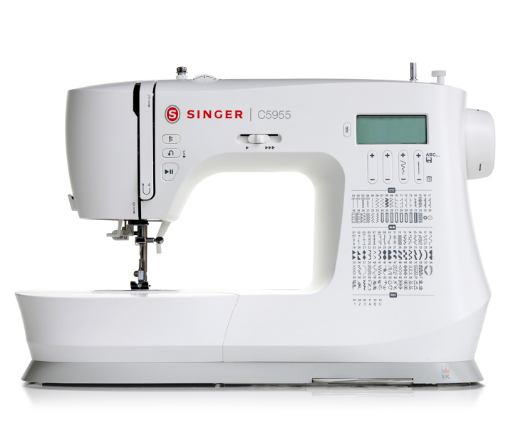 C5955 har 200 inbyggda sömmar, inklusive nytto-, stretch- och dekorativa sömmar samt alfabet. Stygn väljs via knappsats och visas på LCD-skärm.