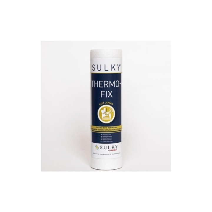 SULKY THERMOFIX är precis som ett nonwoven som består av vidhäftande fibrer för permanent bindning av två olika tyger. Med detta material går det enkelt att stryka på emblem och lappar. Genom att använda THERMOFIX är det enkelt och snabbt att fästa broderier på jackor, skjortor och tyger. Permanent – ""även efter frekventa tvättar! THERMOFIX har en liknande struktur som nonwovens , därför förblir materialet platt under klippning. Att arrangera applikationer är mycket enklare på detta sätt. Krympning och upprullning, vilket händer ganska ofta när man använder limfilmer, är ett minne blott