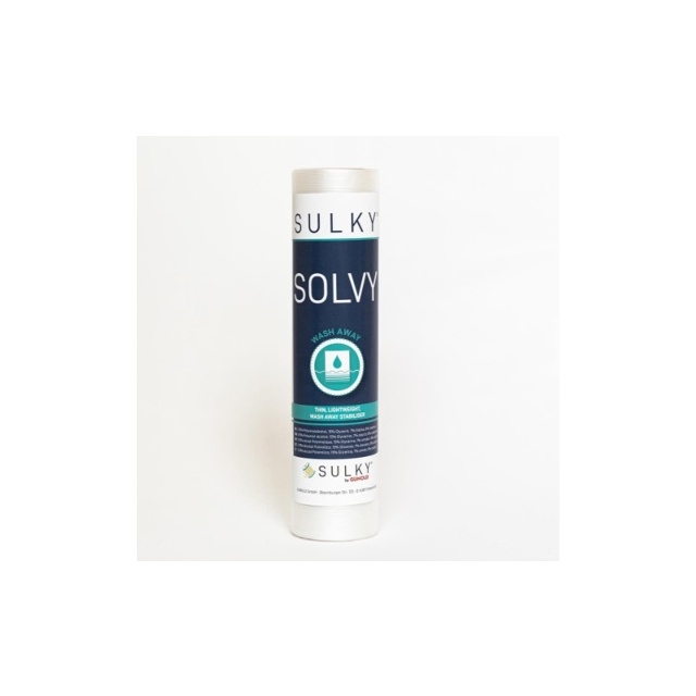 Ju mjukare och skrymmande tyget är, desto lättare försvinner stygnen i materialet, vilket resulterar i fula broderier. Med SULKY SOLVY blir varje enskild söm briljant, och även intrikata mönster med de mest detaljerade broderierna sys med nålskärpa. Tricket är en vattenlöslig folie som läggs på tyget innan brodering och sedan tvättas ur utan att lämna några rester. Även elastiska stickade tyger och frotté kan broderas med lätthet och precision! SOLVY kan även användas som tygunderlag när båda sidor av broderiet är synliga – för snyggt resultat, t.ex. på halsdukar eller handdukar.