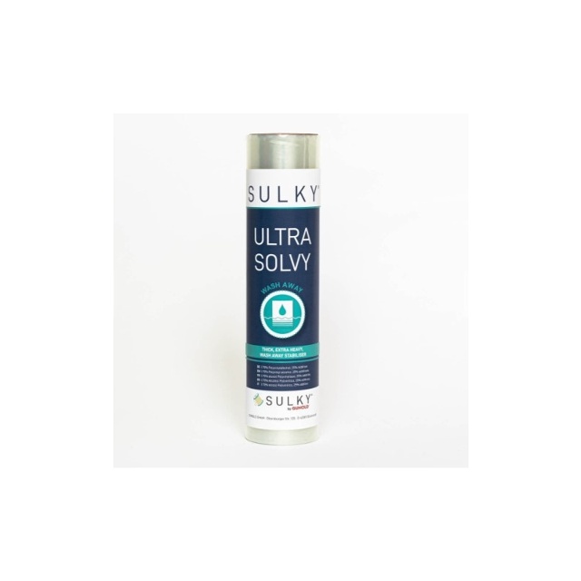SULKY ULTRA SOLVY är en extra stark och transparent, vattenlöslig film, som efter bearbetning tvättas ur med varmt vatten. Den kan fästas ordentligt i en broderibåge för direkt broderi, utan att använda tyg eller några ytterligare mellanlägg