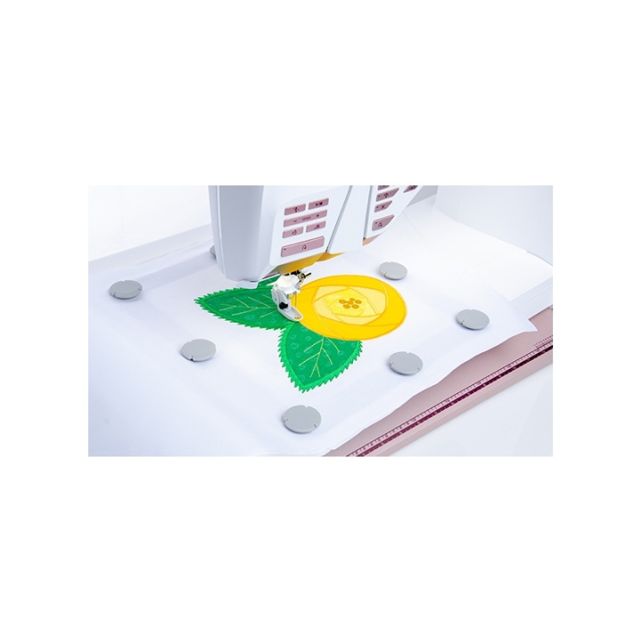Stort 200 x 200 mm (8” x 8”) broderiområde, idealisk storlek för quiltdesign samtidigt som det är enklare och snabbare att spänna materialet utan innerbågen.