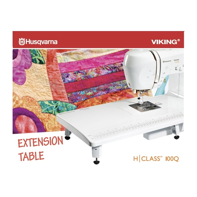 Förlängningsbordet används när extra arbetsyta behövs vid sömnad av större projekt. Bordet ger bättre stöd för tyget och underlättar hantering av större tygstycken under arbetet.