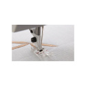 För applicationer, olika varianter av satinsöm och andra dekorativa sömmar. Använd stygnlängd efter eget önskemål. Urtaget på fotens undersida ger plats för sömmarna. Du ser sömmen bra tack vare fotens transparanta material och röda markering. Använd det mellanlägg som materialet kräver.