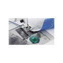 Skapa vackra sömnadsprojekt med HUSQVARNA VIKING® spolkorg för dekorationsgarner. Spolkorgen har en stor trådöppning för dekorationsgarner och kraftiga trådar och har en ställbar spännskruv för specialtrådar. Sänk ned matartänderna, ta bort stygnplåten och byt ut den vanliga spolkorgen mot spolkorgen för dekorationsgarner. Skjut tillbaka stygnplåten på plats och höj matartänderna.