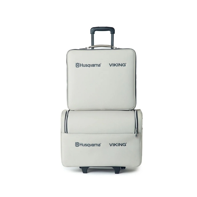 Väsksetet är utformat för att skydda och transportera din HUSQVARNA® VIKING® DESIGNER QUARTZ™ 29 Sy & broderimaskin. Väskorna är tillverkade av premiumtyg och körs enkelt och stabilt med det fasta förlängningshandtaget och stadiga hjul. Broderiväskan har en rem på baksidan som gör det enkelt att fästa den på handtaget. Väskan har stora fickor för förvaring av tillbehör, handtag på sidorna som underlättar när man ska lasta in den i bilen och en rem att spänna fast maskinen med så att den står stadigt.