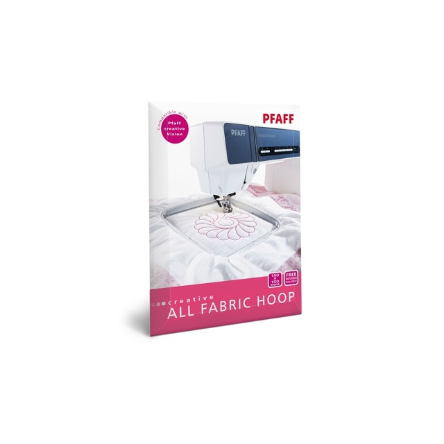 Äntligen en broderbåge som passar för alla behov! En ytterbåge med Pfaff ”quick release” och två olika innerbågar gör det enkelt att brodera med Pfaff creative ALL FABRIC HOOP!