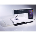 Förlängningsbordet monteras direkt på symaskinens friarm och skapar en plan arbetsyta i nivå med maskinens syyta. Den svävande konstruktionen saknar stödben och monteras på samma sätt som maskinens tillbehörsask. Den integrerade justerbara guiden gör det enklare att sy parallella sömmar och hålla ett jämnt avstånd vid sömnaden.
