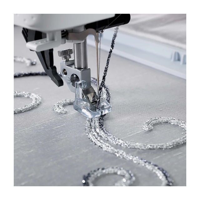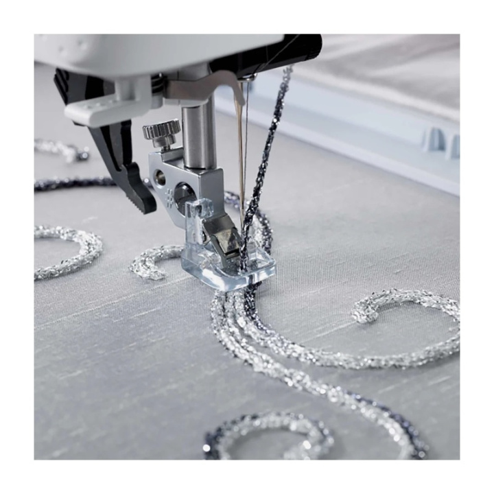 Med Pfaffs Yarn Couching Foot Set kan du enkelt fästa garn på tyget och skapa vackra, texturerade mönster – antingen genom frihandssömnad eller maskinbroderi. Setet innehåller två olika pressarfötter som passar garn och tjockare trådar i skilda bredder. En komplett instruktion medföljer så att du kommer igång snabbt