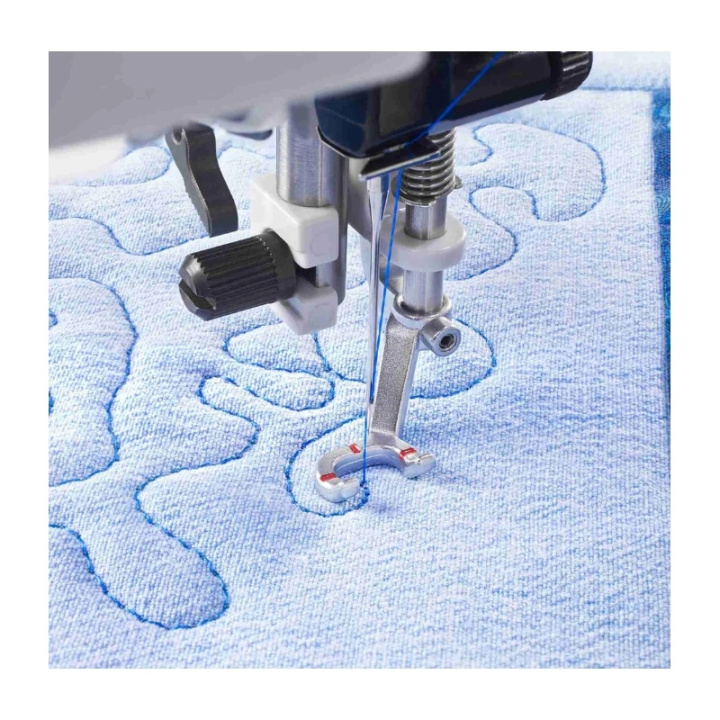 Den öppna pressarfoten för fjädrande frihandssömnad från Pfaff (artikelnummer 821141096) är det perfekta valet för dig som älskar frihandsquiltning, frihandsbroderi och frihandssömnad. Fotens öppna design ger maximal sikt över nålområdet – idealiskt när du vill följa linjer, konturer eller skapa fria motiv med hög precision.