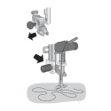 Den fjädrande funktionen hjälper till att kontrollera tyget och ger jämna stygn även vid högre hastighet, samtidigt som den skyddar tyget från att lyfta med nålen. Passar utmärkt för både tunna och medeltjocka material.