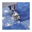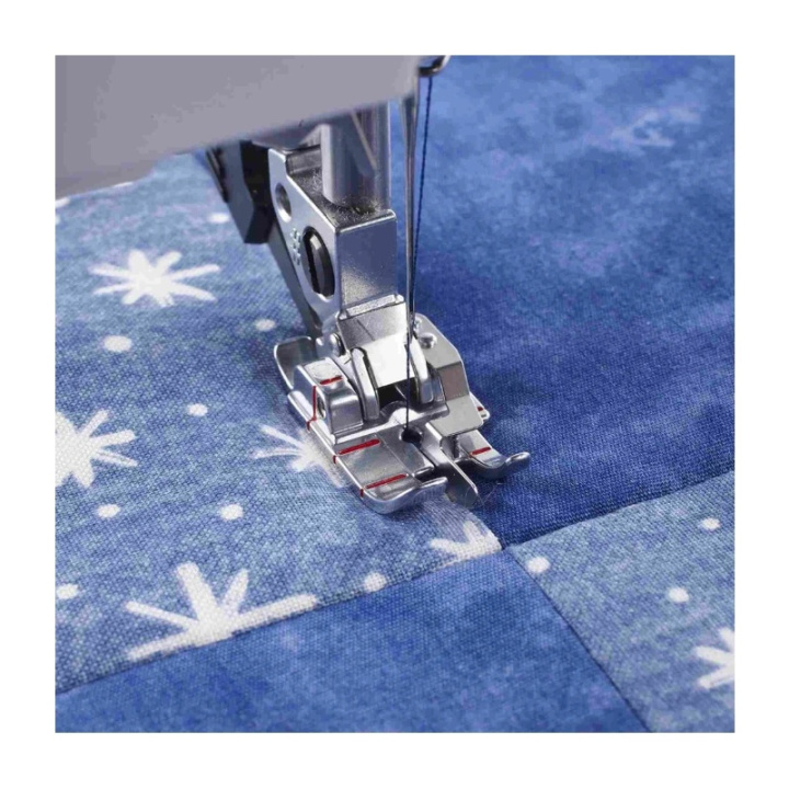 Ett måste för quiltaren! Guiden glider smidigt över sömmen för perfekt sömnad "i diket" på ditt översta tyg. Nålhålet är ovalt och gör att du kan justera nålpositionen för exakt placering, flytta nålen åt höger för att minska sömsmånen och åt vänster för att öka den. För att sy stickningar, använd guiden för att exakt placera sömmen på block, plagg eller heminredningsprojekt