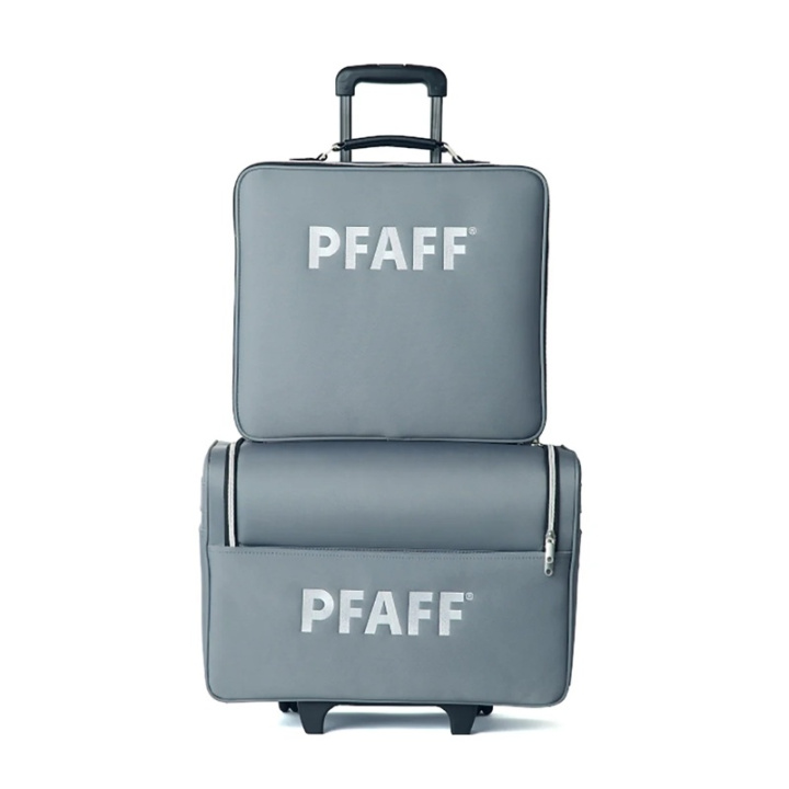 Väsksetet är utformat för att skydda och transportera din PFAFF® creative expect™ 350 Sy & broderimaskin. Väskorna är tillverkade av premiumtyg och körs enkelt och stabilt med det fasta förlängningshandtaget och stadiga hjul. Broderiväskan har en rem på baksidan som gör det enkelt att fästa den på handtaget. Väskan har stora fickor för förvaring av tillbehör, handtag på sidorna som underlättar när man ska lasta in den i bilen och en rem att spänna fast maskinen med så att den står stadigt.