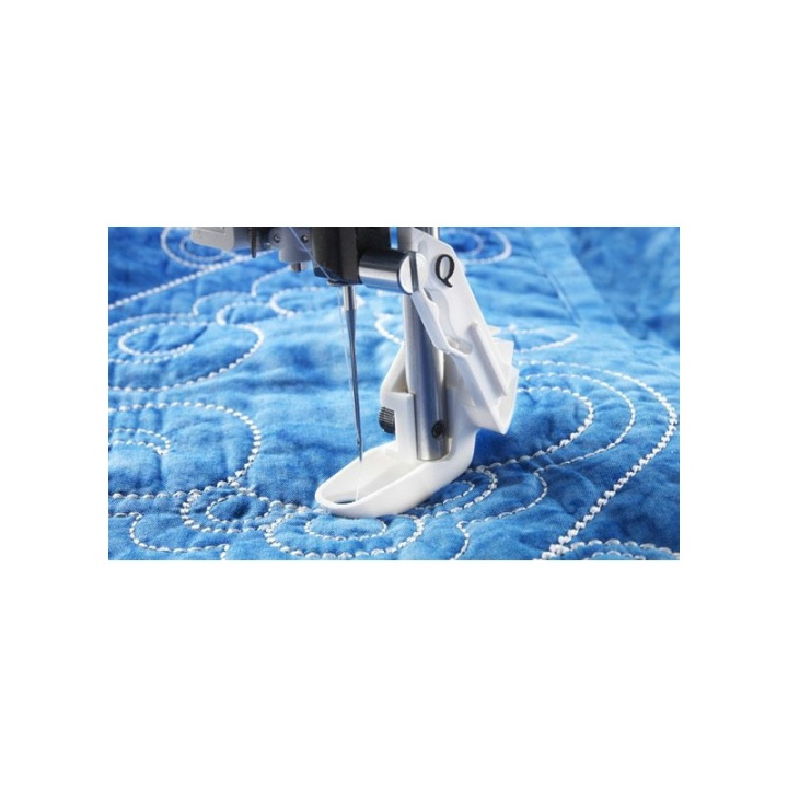Sensor Q-fot används för broderi och frihandssömnad samt quiltning och broderi på särskilt kraftiga eller mjuka material. Sätt fast sensor Q-fot när du vill frihandsquilta på fluffig vadd, brodera med olika tekniker på vadderat tyg eller tjocka frottéhanddukar, samt när du ska sy över broderier eller dubbla lager dekorsömmar.