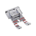 1/4" pressarfoten används för att quilta ¼” sömsmån, ett måste för att sätta ihop quilttoppar! Den kan användas för små projekt med smal sömsmån som babykläder och dockkläder. De röda ledlinjerna på foten hjälper dig att bemästra perfekta hörn! Använd endast en raksöm med den här pressarfoten och se till att vrida handhjulet mot dig innan du syr för att säkerställa att nålen går fri från pressarfotens öppning.