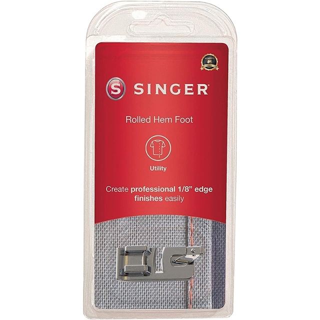 - Pressarfoten med rullfåll, även känd som en smal fållsfot, används för att sy en smal rullfåll, vilket ger en professionell kantfinish på 1/8 tum