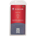 - SINGER rullsnäpppressarfot har en längre rulle fram och en uppsättning mindre rullar bak, för jämn tygmatning.