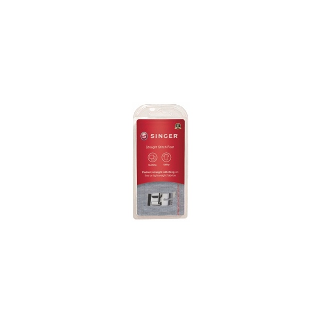 Raksömsfoten är utformad för skapar perfekta raka stygn på tunna eller medelkraftiga tyger. Pressarfoten minskar risken fört att tygerna fastnar i matartänderna tack vare det lilla nålhålet på pressarfoten.