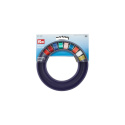 Prym-spolringen tillhandahåller säker och ordnad förvaring av symaskinsspolar. Den lila ringen av mjuk plast rymmer upp till tjugo spolar och förhindrar dessutom att tråden rullas av. Spolar av alla storlekar får ett fast stöd i den, och den kan formas till önskad form med en enkel teknik. Du lägger den 15 till 20 sekunder i kokande vatten och de två kanterna formas för att passa spolens diameter. Genom att doppa den i kallt vatten återfår den sin ursprungliga hårdhet och förblir i den formade formen.