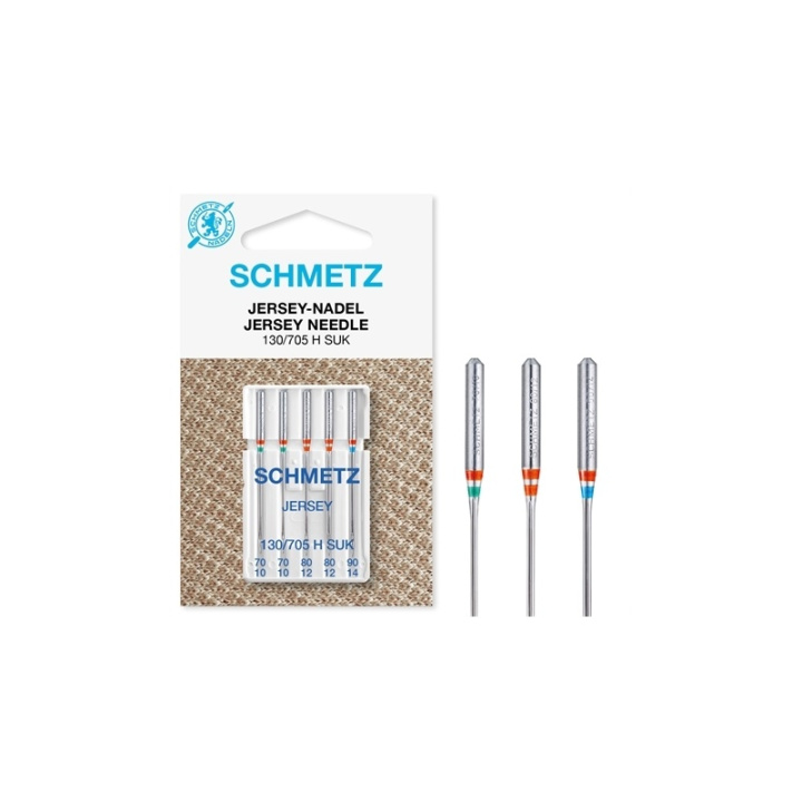 Schmetz jerseynål är en symaskinsnål med medelkulspets, jerseynålen är utformad för att förhindra att stickade fibrer går sönder vid sömnad och man undviker därmed att det går maskor i tyget.