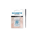 Schmetz super stretch black är en symaskinsnål med medelkulspets speciellt anpassad för ömtåliga stretchtyger och stickade tyger som ofta ställer högre krav på nålen. Black super stretch nålen med sina speciella egenskaper är ett bra alternativ eftersom den glidande nonstick-beläggningen säkerställer nålens skonsama hantering av ömtåliga tyger. I kombination med det breda ögat och det vidgade trådspåret förhindrar den också att tråden går av – även vid sömnad med grövre trådar. Nålens skaft är plattare än på andra nålar men det har fortfarande samma diameter, nålen kommer därför närmare kroken för att förhindra hoppstygn. Nålbladets speciella form säkerställer att elastiska tyger kan sys utan problem, vilket minskar risken trådbrott, nålbrott och hoppstygn.