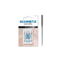 Schmetz super stretch black är en symaskinsnål med medelkulspets speciellt anpassad för ömtåliga stretchtyger och stickade tyger som ofta ställer högre krav på nålen. Black super stretch nålen med sina speciella egenskaper är ett bra alternativ eftersom den glidande nonstick-beläggningen säkerställer nålens skonsama hantering av ömtåliga tyger. I kombination med det breda ögat och det vidgade trådspåret förhindrar den också att tråden går av – även vid sömnad med grövre trådar. Nålens skaft är plattare än på andra nålar men det har fortfarande samma diameter, nålen kommer därför närmare kroken för att förhindra hoppstygn. Nålbladets speciella form säkerställer att elastiska tyger kan sys utan problem, vilket minskar risken trådbrott, nålbrott och hoppstygn.