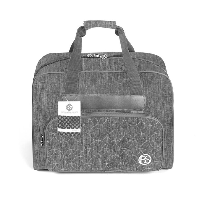 Med sin quiltade framficka och tyget i trendigt grått kombinerar symaskinsväskan funktionalitet med snygg design. Den eleganta loggan på framfickan och logotypdetaljerna på blixtlåsdragen ger också ett speciellt blickfång.
