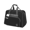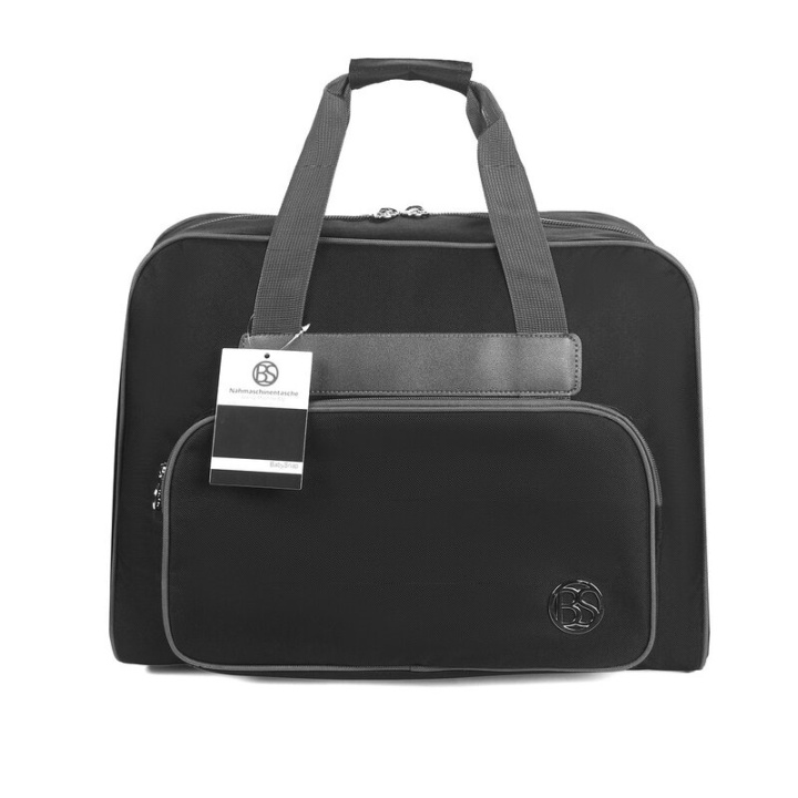 Med sin praktiska framficka och tyget i trendigt svart kombinerar symaskinsväskan funktionalitet med snygg design. Den eleganta loggan på framfickan och logotypdetaljerna på blixtlåsdragen ger också ett speciellt blickfång.