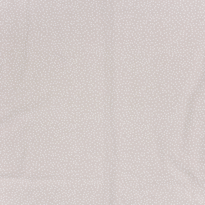 Denna mönstrade bomullspoplin med små vita prickar på beige botten har ett mjukt och harmoniskt uttryck som passar perfekt till både klassiska och moderna projekt. Tyget har slät yta och fin stadga, vilket gör det lätt att arbeta med och ger ett snyggt resultat i färdiga plagg.