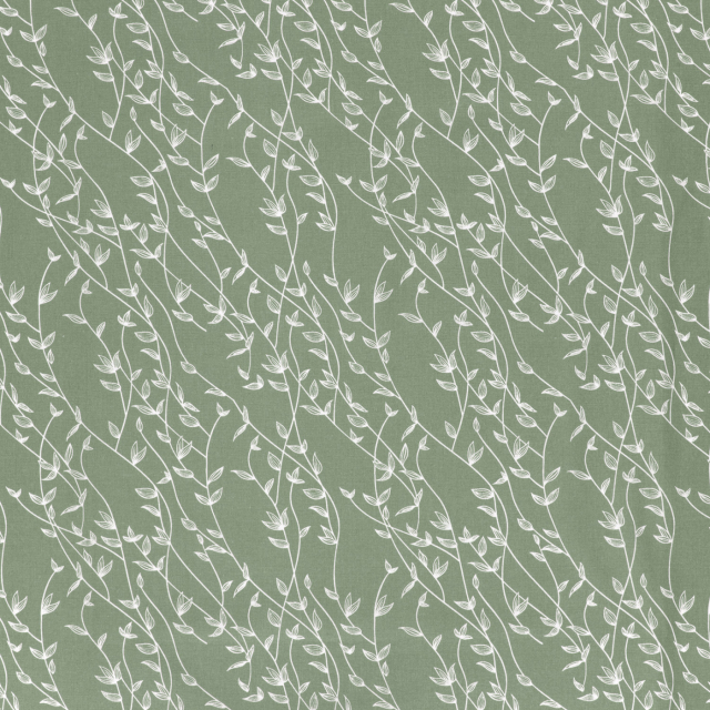 Bomullspoplin lämpar sig utmärkt till klänningar, blusar, skjortor, barnkläder, sängkläder, bäddset och lättare inredningsdetaljer. Det stilrena bladmönstret ger liv utan att ta över och är enkelt att kombinera med enfärgade tyger.
