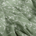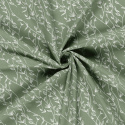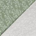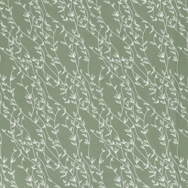 Denna mönstrade bomullspoplin med vita blad på grön botten har ett lugnt och naturligt uttryck som passar perfekt till tidlösa sömnadsprojekt. Tyget har slät yta och fin stadga, vilket gör det lätt att arbeta med och ger ett snyggt resultat i färdiga plagg.