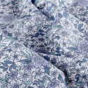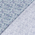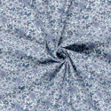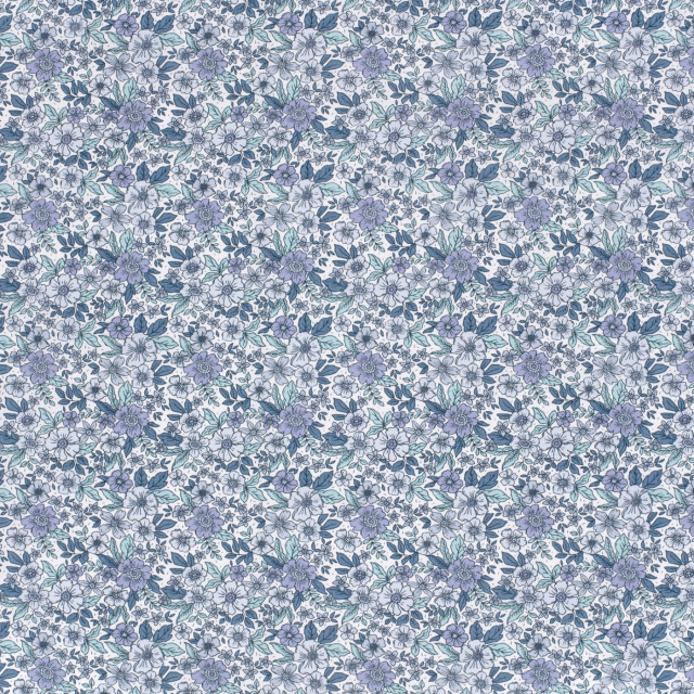 Denna mönstrade bomullspoplin med blå blommor på offwhite botten har ett klassiskt och harmoniskt uttryck med blommor och blad i svala nyanser av blått, grått och mint. Tyget har en slät yta och fin stadga, vilket gör det lätt att arbeta med och ger ett snyggt resultat i färdiga plagg.
