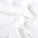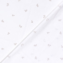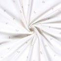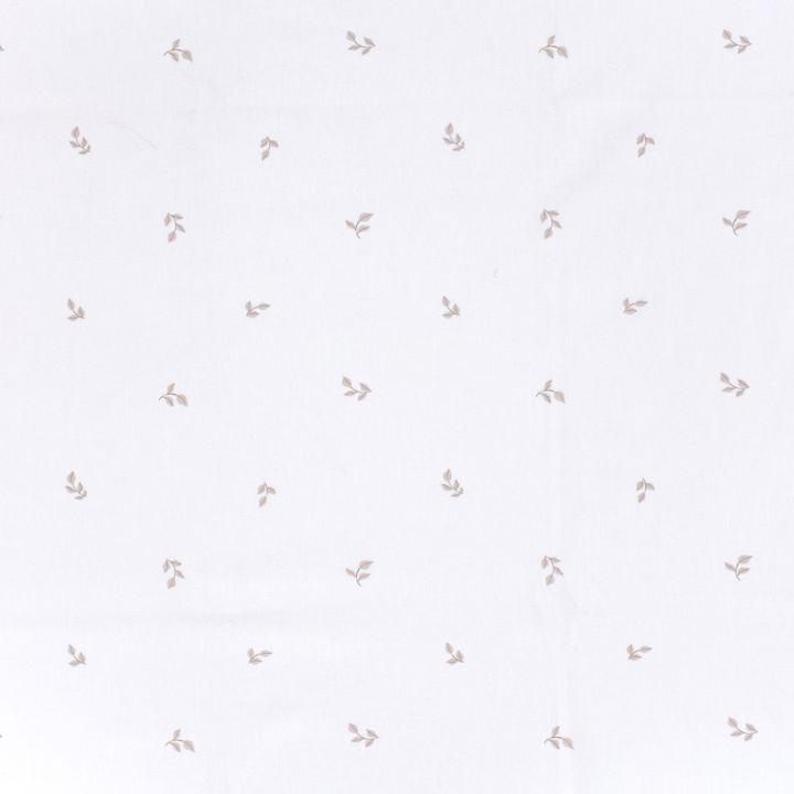 Denna mönstrade bomullspoplin med små beige blad på vit botten har ett mjukt och harmoniskt uttryck som passar perfekt till tidlösa sömnadsprojekt. Tyget har slät yta och fin stadga, vilket gör det lätt att arbeta med och ger ett snyggt resultat i färdiga plagg.