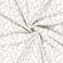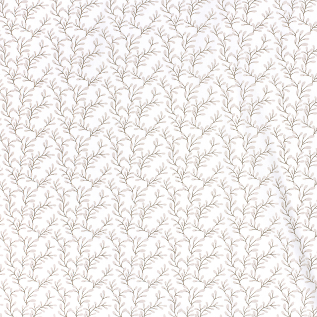 Denna mönstrade bomullspoplin med beige kvistar på vit botten har ett harmoniskt och naturinspirerat uttryck som passar perfekt till stilrena och tidlösa sömnadsprojekt. Tyget har en slät yta och fin stadga, vilket gör det lätt att arbeta med och ger ett snyggt resultat i färdiga plagg.