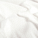 Denna mönstrade bomullspoplin med små beige prickar på vit botten har ett mjukt och diskret uttryck som passar perfekt till tidlösa och harmoniska projekt. Tyget har slät yta och fin stadga, vilket gör det lätt att arbeta med och ger ett snyggt resultat i färdiga plagg.