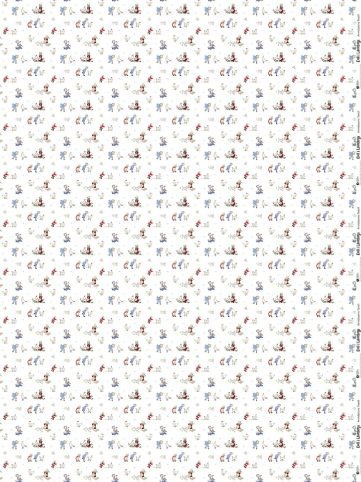 Trikåtyg med motiv från Emil i Lönneberga där flera karaktärer och små scener återkommer i ett tätt mönster på naturvit botten. Emil syns tillsammans med Ida, figurer och djur i varierade situationer, vilket ger tyget ett detaljrikt och levande uttryck. Den ljusa bakgrunden lyfter fram mönstret samtidigt som helheten behåller en balanserad karaktär.