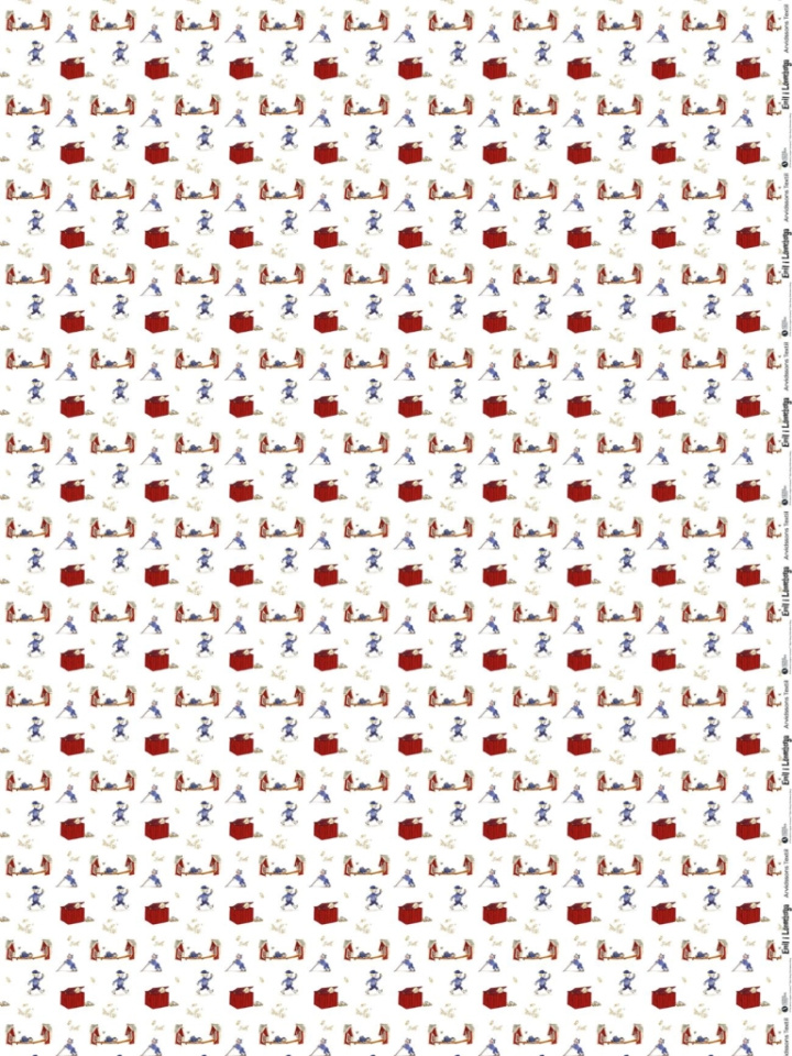 Trikåtyg med motiv från Emil i Lönneberga där små, återkommande scener skapar ett livfullt mönster på naturvit botten. Emil syns i olika situationer tillsammans med detaljer som snickarboden och den röda verktygslådan, vilket ger tyget ett tydligt berättande uttryck. Den mjuka trikåkvaliteten med stretch gör tyget följsamt för plagg som används nära kroppen.